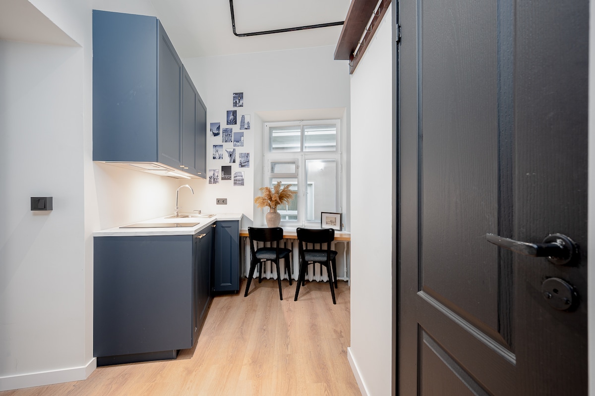 Desfrute deste estúdio único e elegante a poucos passos do coração da Cidade Velha de Vilnius. Rodeado por cafés encantadores, bares acolhedores, um mercado de alimentos interior e um parque com uma excelente vista sobre Vilnius, este estúdio de 38 metros quadrados inclui uma cozinha totalmente equipada, WIFI de alta velocidade (500MB/s), uma TV com Netflix e uma confortável cama de casal. Localizado em um edifício histórico de 120 anos, a apenas quatro paradas de ônibus do Aeroporto de Vilnius e a 10 minutos a pé da estação de trem/ônibus.