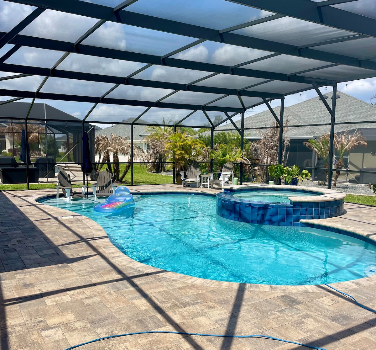 Traga toda a família para este ótimo lugar com muito espaço para se divertir. Desfrute desta casa elegante muito perto do lago. Crie novas memórias enquanto se hospeda nesta bela propriedade e todas as suas comodidades, como uma piscina coberta com vista para a natureza. Sala de jogos projetada com mesa de sinuca/hóquei e muita diversão. Com acesso ao lago a partir do seu quintal e a 5 minutos de todos os restaurantes e entretenimentos no Lago Panasoffkee. Esta casa totalmente renovada fará da sua viagem uma experiência única e inesquecível