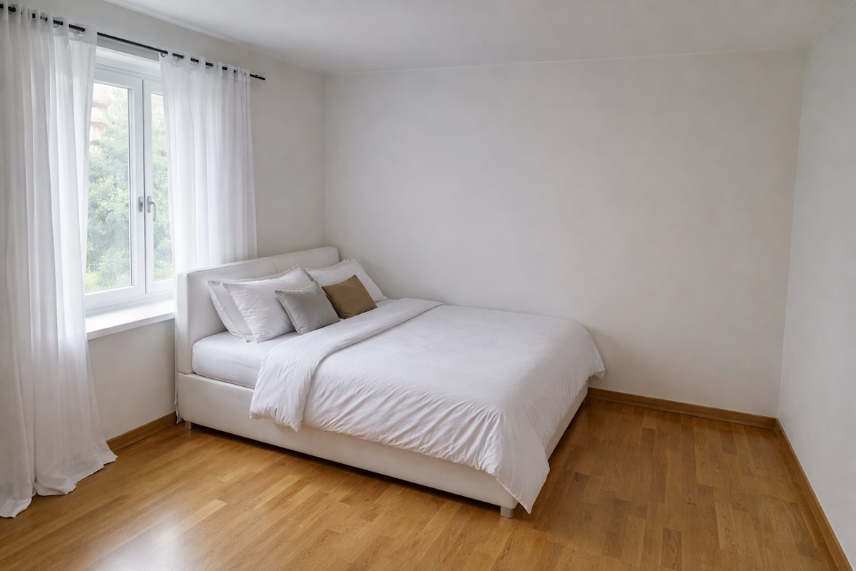 Quarto simples em um apartamento harmonioso
