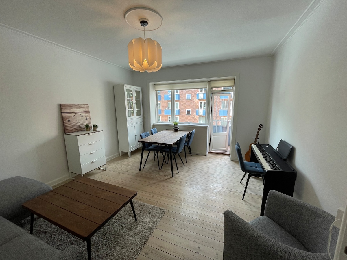 Um apartamento de dois quartos com cozinha totalmente abastecida muito centralmente situada em Amager, perto do centro da cidade, da praia, Christiana e Tivoli. Compras, restaurantes, fast-food e bares a 5 minutos a pé. Aluguéis de bicicletas disponíveis para uma viagem à praia ou ao centro da cidade. O apartamento tem um pequeno quarto com uma cama queen size (140 x 200 cm) e uma sala de estar com um sofá-cama para um terceiro adulto opcional ou duas crianças. Colchão extra no chão, conforme necessário. Wi-fi gratuito incluso no preço.
