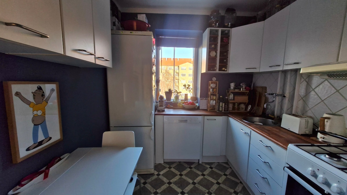 Bem-vindo à nossa acolhedora cobertura no quinto andar, oferecendo vistas deslumbrantes da cidade. Esta espaçosa residência (125 m²) dispõe de uma grande sala de estar, dois quartos, um banheiro generoso e duas varandas para você desfrutar do horizonte. Convenientemente localizado a apenas cinco minutos a pé do metrô, conectando você ao centro da cidade em três e ao aeroporto em apenas dez. Um shopping fica a apenas cinco minutos de distância, e as compras de supermercado ficam ao lado. Experimente a vida na cidade no seu melhor!