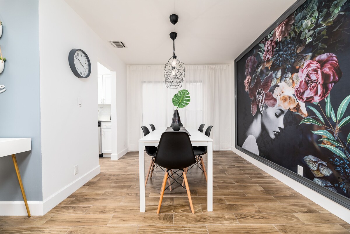 A Sea Turtle Vacation Homes lhe dá as boas-vindas para experimentar as férias perfeitas nesta casa moderna de 3 quartos impecavelmente limpa e recentemente remodelada. Idealmente localizado a apenas 15 minutos de Las Olas, da praia, do Aeroporto FLL, do Hard Rock Casino, do Hard Rock Stadium e do Centro de Convenções de Broward. A acomodação acomoda até 8 hóspedes e dispõe de uma piscina aquecida compartilhada com a unidade vizinha. Desfrute de comodidades, incluindo um círculo de fogueira, relva artificial, iluminação noturna, jogos ao ar livre.