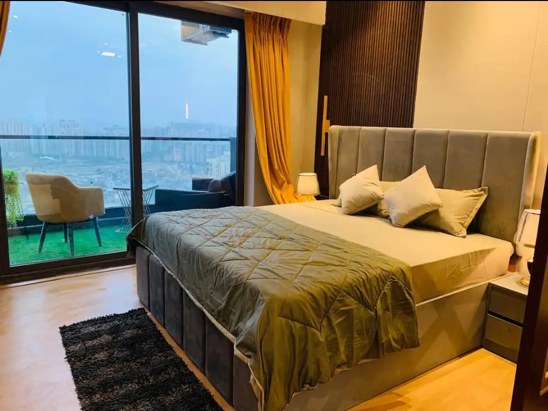 Introducing our exquisite luxury studio apartment: Nestled in the heart of the city, this opulent studio boasts modern elegance and unparalleled comfort. The open-concept design invites you into a spacious haven, bathed in natural light from the large windows that offer breathtaking city views. This apartment is on the 41st floor in one of the tallest sky scraper in Delhi - NCR. The apartment has a river facing view from the balcony!!
