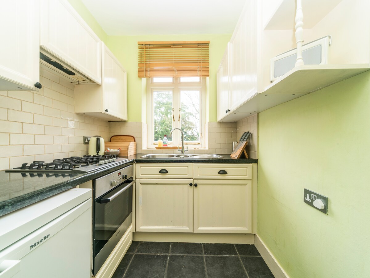 Situado a uma curta distância a pé da Esher High Street, o apartamento está situado do outro lado do pátio da Clive House, uma habitação georgiana construída no meio do século XVIII por Clive da Índia. O alojamento recentemente renovado inclui: sala de estar, cozinha/jantar e quarto duplo com uma cama king size. A sala de estar inclui uma nova cozinha compacta e bijou totalmente equipada, área de jantar com queimador de lenha, sofá luxuoso e Smart HD TV/barra de som Sonos, bem como Wi-Fi gratuito.