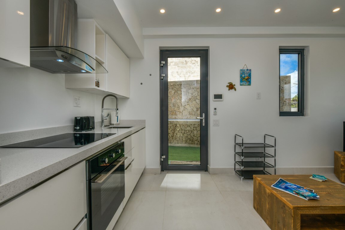Uma maneira única e encantadora de experimentar a ilha. - Vila privativa localizada no final de uma estrada sem saída - Wi-Fi gratuito e estacionamento gratuito - Incrível Pátio Sombreado e Palapa com Jantar ao Ar Livre e acesso à Piscina - Decoração caribenha, mas moderna para umas férias elegantes - Gerenciado por uma empresa profissional com especialistas em atividades disponíveis - Um jardim de luxo para uma verdadeira vida ao ar livre Acomoda 6 adultos/crianças e um bebê. Desfrute de sua piscina, churrasqueira, TV, máquina de lavar louça, chuveiro externo e colchão king-size