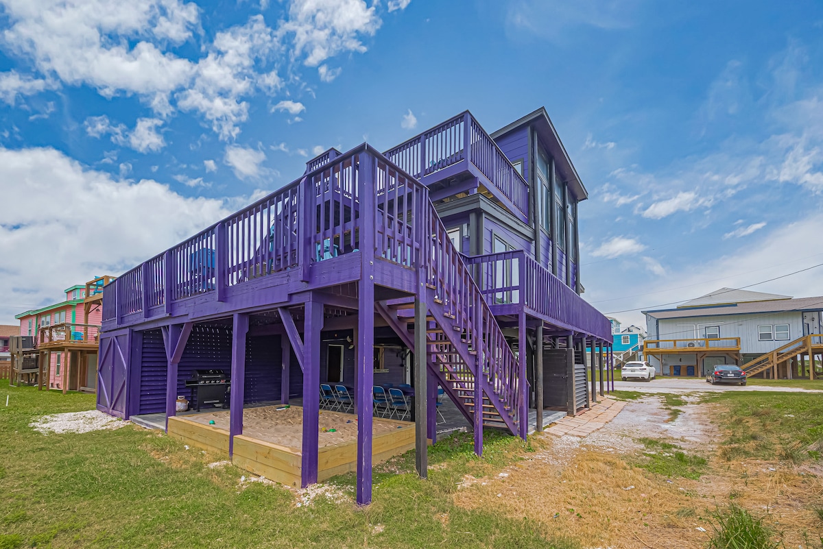 NOVA construção à beira-mar! Verdadeiramente um unicórnio:🦄 LOCALIZAÇÃO, LUXO e tão bom ter NOVO! Localizado a poucos passos dos melhores restaurantes e praia de Surfside! Desfrute de redes e jogos sob a casa. Suba os degraus até um incrível deck sombreado com vista de San Luis Pass até o cais! Vistas desobstruídas de mais de 180 graus. Quartos abertos para SunDeck e observação de estrelas com 🔥 lareira YouTube Beachfront Luxe para vídeo Taxa de limpeza de $ 125 e apenas $ 75 no total para até 2 animais de estimação para estadia inteira!