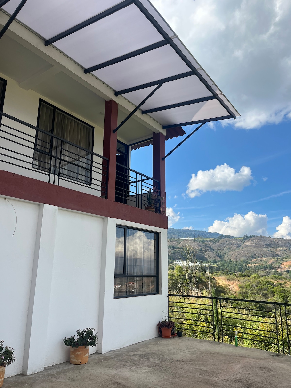 Belo chalé de campo em um condomínio fechado com vista espetacular, recém-construído, tipo duplex, especial para o descanso e para os amantes de caminhadas e ciclismo. O chalé tem fácil acesso a apenas 400 metros da estrada pavimentada e adequado para carros. De lá, você pode ir para : Sutamarchan e Sachica em 5 minutos, Villa de Leyva em 8 minutos e Raquira a apenas 10 minutos. O chalé tem dois quartos, dois banheiros e uma grande área social, um pátio ao ar livre onde você pode fazer assados e fogueiras.