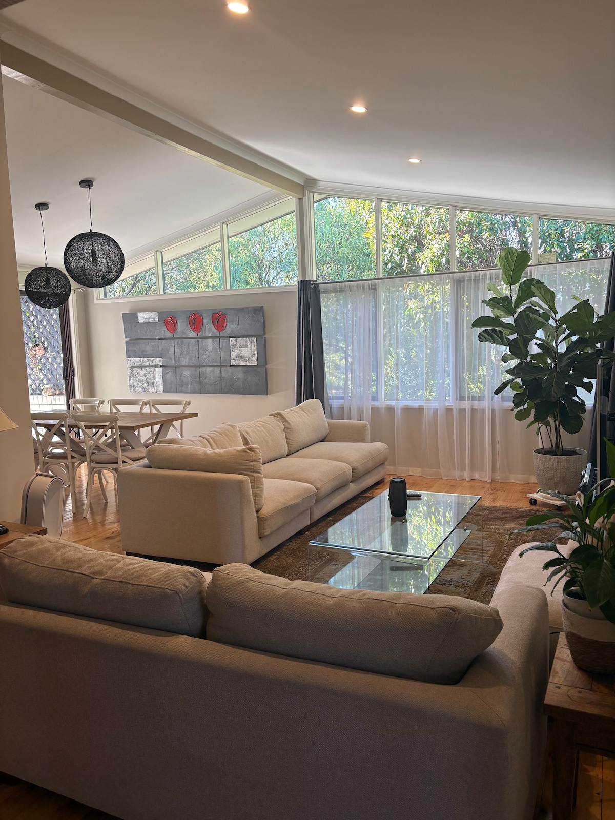 Light-filled 3-bedroom haven in the heart of Canberra! Perfect for families or groups. Unwind by the (seasonal) pool or gym, then relax in the cozy courtyard. Work from the dedicated space and cook in the well-equipped kitchen. Eco-friendly features and thoughtful touches such as an XBox, massage chair, games and books, make your stay comfortable and unforgettable. Free parking, wifi and walking distance to shops & restaurants. Book your Canberra oasis today.