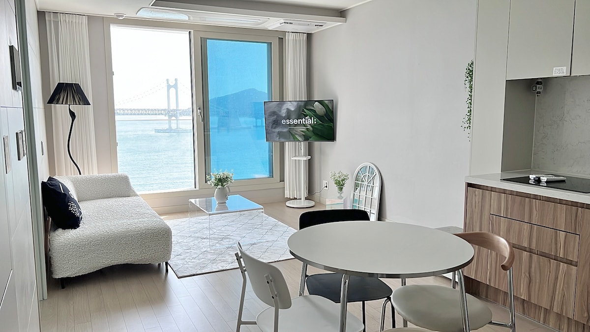 🩷 Outubro de 2025: Grande reabertura após reforma Esta é a vista para o mar onde você pode ver a ponte 🩷 Gwangan à sua frente. Você pode assistir ao nascer do sol vindo da Ponte Gwangan. 3 min a pé da praia no Gwangalli Drone Show 1 minuto a pé do Minrak The Market, 5 minutos a pé do parque à beira-mar 🩷 Relaxe e faça o checkout. (13:00 checkout) Check-in 16:00/check-out 13:00. Padrão 🩷 2 pessoas (máximo de 6 pessoas) Este anúncio é gerenciado pelo anfitrião 🩷. Você pode desfrutar de assistir TV a cabo no canal de transmissão coreano com 🩷 um descanso confortável. 🩷 Estacionamento gratuito (estacionamento subterrâneo) no prédio. 🩷 Por favor, entre em contato comigo com antecedência se precisar de armazenamento de bagagem. Acomodações 🩷 onde você pode cozinhar (indução) Por favor, não faça barulho 🩷 depois das 22h. Esta acomodação foi registrada e operada como uma empresa doméstica legal de compartilhamento de casas devido ao Mystament especial.