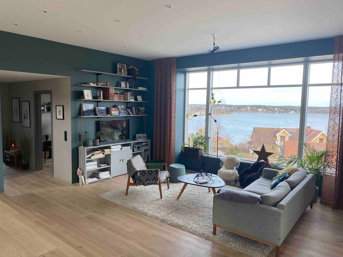 Casa tranquila e recém-construída de 240 m² com vista fantástica para o mar e decorada para realmente poder relaxar e socializar. Grande sala de estar, cozinha e sala de jantar em um (aproximadamente 90 m²), mais duas salas de estar (uma com TV, uma sala de jogos). Quatro quartos, um dos quais também é um escritório. Três banheiros. Grande terraço com muitos grupos de assentos e banheira de hidromassagem. Mirtilos e floresta na parte de trás e uma vista maravilhosa para o mar na frente. 150 m para banhos, 500 m para área de lazer/banhos, 15 km para Vaxholm, 30 km para o centro de Estocolmo.