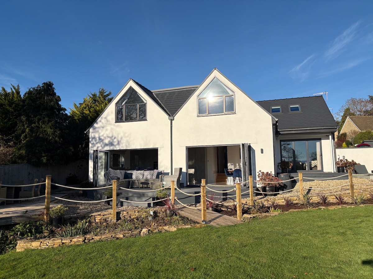 Bem-vindo a Cheltenham e à nossa nova e bela extensão! Você terá um lugar só seu com 2 quartos grandes, cozinha, sala de jantar/estar com vista para o nosso grande e belo jardim com vista para a colina Cleeve e Cotswold. Você também pode usar nosso grande jardim para fazer refeições, bebidas, churrasco ou apenas relaxar (enquanto seus filhos correm por aí, se houver) Todos os quartos têm belas vistas.