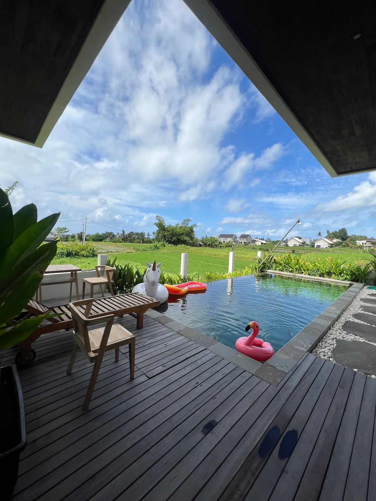 Welcome to Lumix Residence, a boutique-hotel retreat featuring four elegant apartments surrounded by tropical charm. Refresh yourself in our spacious marble pool, filled with crystal-clear mountain water, and experience true relaxation in a serene natural setting. Unwind on our rooftop terrace overlooking peaceful rice fields and sea views, the perfect spot to watch the sunrise with your morning coffee or take in the sunset as the day fades away!