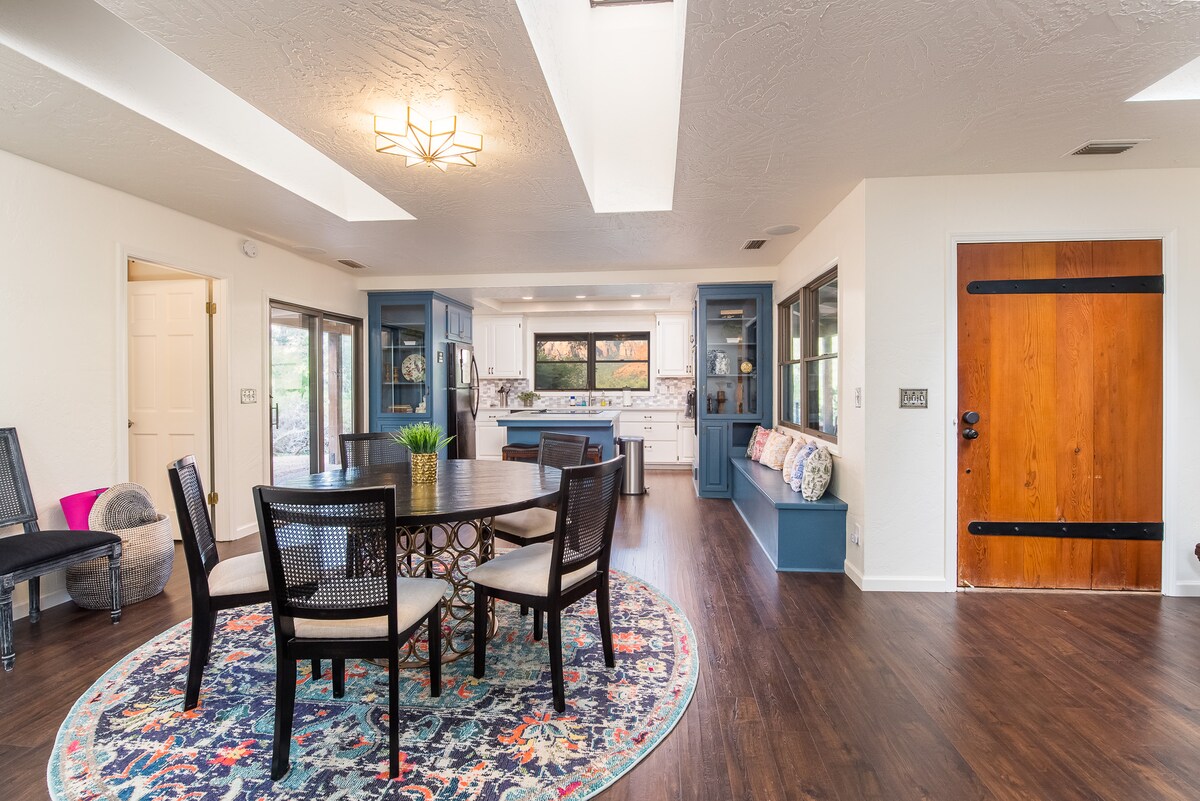 Star of Sedona* Welcome to your private sanctuary in West Sedona! This bright, tranquil Villa sits high on the Mesa, with breathtaking Red Rock Views & a serene deck! Perfect for coffee, birdwatching and evening stargazing. Peaceful and smoke-free, it’s within walking distance of Sedona’s best dining, shopping & trail shuttles—the ideal base for your Sedona escape. Thoughtfully designed for solo travelers or couples seeking calm & connection, the space features high ceilings & panoramic windows.