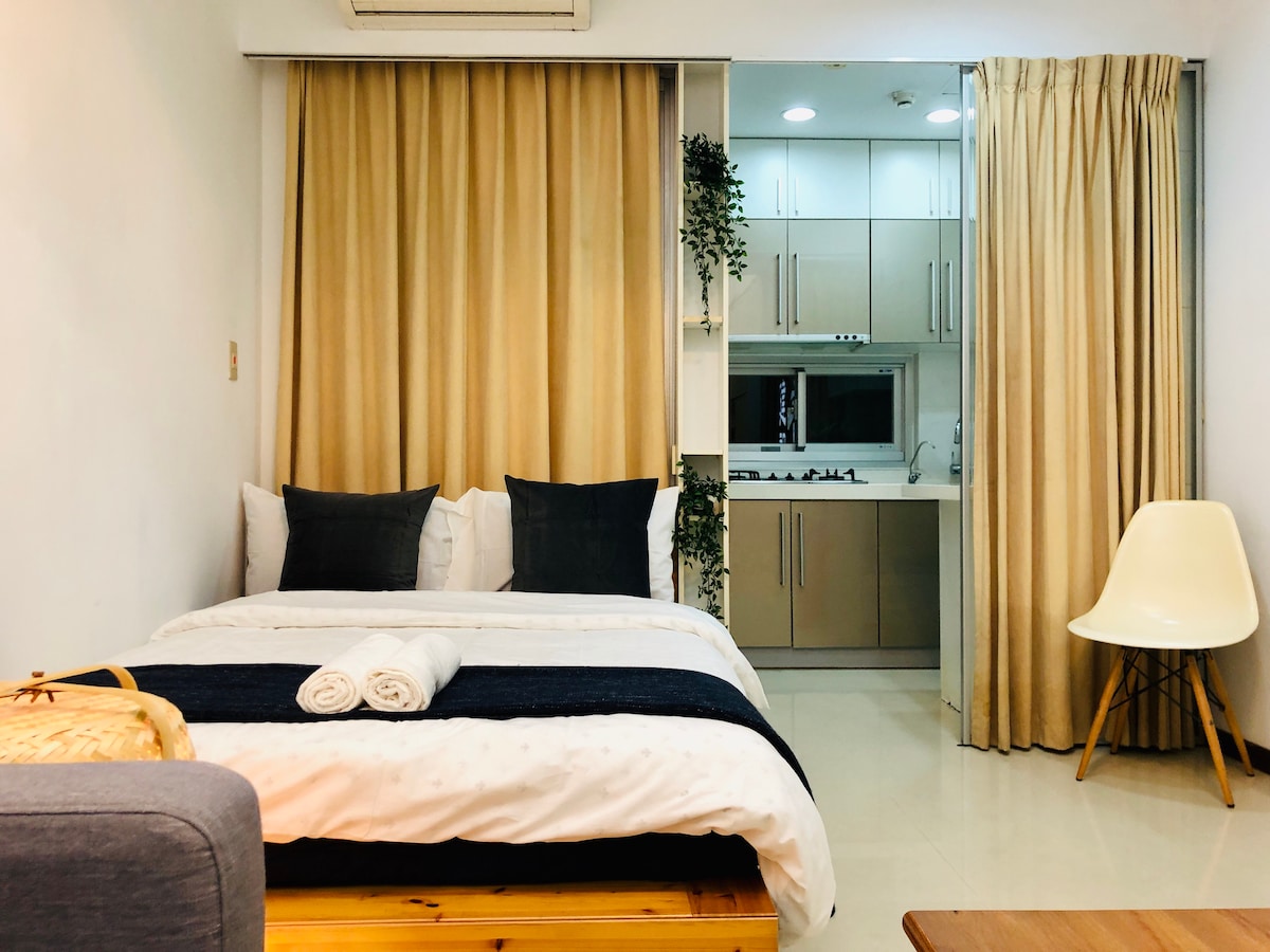Esta residência boutique recém-projetada é baseada em preto, branco e cinza, combinando estética minimalista moderna com texturas de alta qualidade para criar uma atmosfera de vida calma, tranquila e de bom gosto.Com o design de iluminação multinível, você pode ajustar livremente de acordo com seu humor e tempo, e desfrutar da experiência de espaço mais confortável e relaxante durante o dia e a noite. Todo o quarto está equipado com um sistema de ar condicionado quente e frio, a sala de estar tem uma TV de alta definição 4K de 65 polegadas, com Apple TV, Netflix e alto-falantes Bluetooth, para que você possa desfrutar de um cinema privado enquanto viaja.Wi-Fi de alta velocidade para negócios ou entretenimento. O quarto está equipado com água quente 24 horas, uma máquina de lavar e secar roupa e um desumidificador e purificador de ar para garantir uma qualidade de ar fresca e confortável durante toda a sua estadia. A cozinha está totalmente equipada para atender a culinária diária; o espaço comum também tem uma academia (sem treinamento de peso). A localização fica perto da margem do rio, ao lado do Parque Renai e do Parque Riverside.Cerca de 8 minutos a pé do Lehua Night Market, fácil de experimentar a comida local.Há um ônibus para a estação MRT na porta, ou cerca de 15 minutos a pé; cerca de 15 minutos para Ximending. Vaga de estacionamento gratuita disponível (reserva obrigatória) Proibido fumar no quarto Alarmes de fumaça estão instalados no quarto e no teto, por favor, certifique-se de cooperar. Estritamente proibido visitantes Sem visitantes e sem eventos ou reuniões de qualquer tipo. Entre em contato conosco caso tenha algum pedido especial antes de fazer sua reserva.
