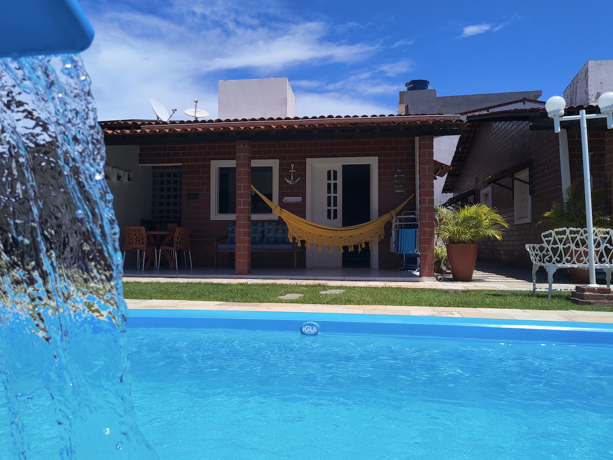 Casa aconchegante de frente para a piscina em condomínio com apenas 4 casas. Ideal para relaxar com conforto e segurança em família ou entre amigos. Acomoda até 10 pessoas. Localização privilegiada: - 200m da Praia das Campas e piscinas naturais na Divisa dos Carneiros - 100m de mercado, bares, restaurantes e da Vila Padre Arlindo - 200m do Quiosque Estação do Sol - 1km do Parque Aquático Acquaventura.