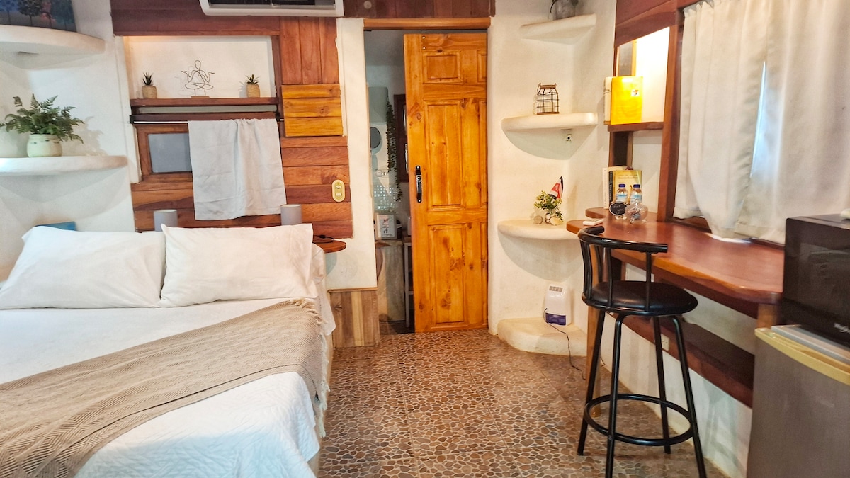 Bem-vindo ao Complexo Casa Aire. O Casa Aire Complex é um empreendimento ecológico com cinco casas exclusivas. O apartamento tem - 1 quarto, 1 banheiro e um sofá-cama na sala de estar, acomoda 3 confortavelmente. Todos os estilos de casa são isolados para eficiência energética e totalmente mobiliados. Guanacaste e outras madeiras locais são usadas no design de interiores. A propriedade tem terrenos no local e pessoal de segurança no local. A área comum geral é compartilhada para estacionamento entre as outras unidades.