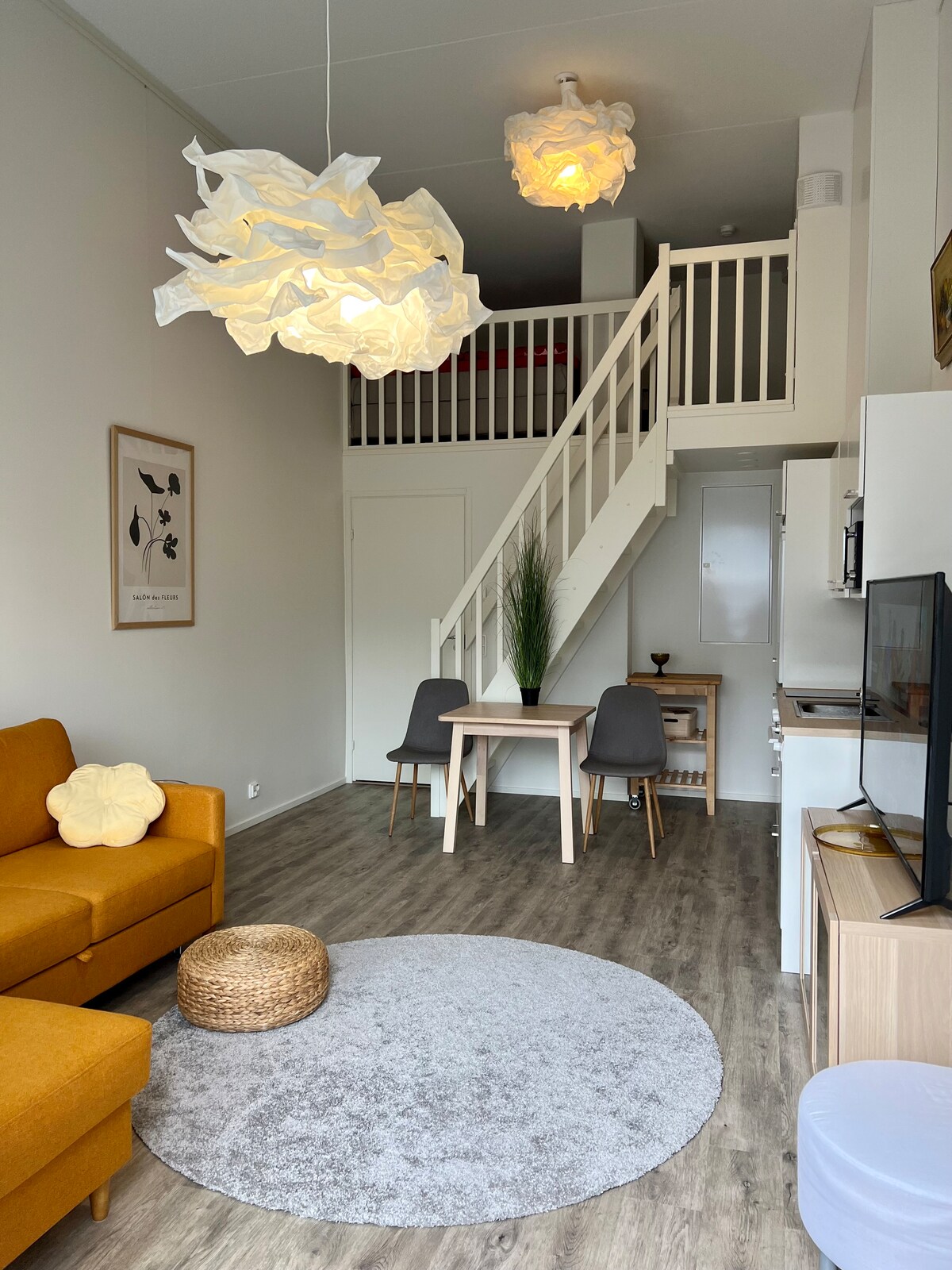 Calorosamente bem-vindo para ficar em um condomínio espaçoso e chique (59m²) no centro de Tampere ❣️ Tudo o que você precisa pode ser encontrado a uma curta distância a pé. Fica a apenas 450 m da estação de trem, a Nokia Arena também fica ao lado. O apartamento do 2º andar tem um quarto com uma cama Yankee para dois. Camas adicionais incluem um sofá-cama e um dobrável + alguns colchões extras. • Cozinha moderna em plano aberto totalmente equipada com enclave • Varanda envidraçada • TV 55" Wi-Fi gratuito • Check-in autónomo Há estacionamento gratuito nas proximidades.