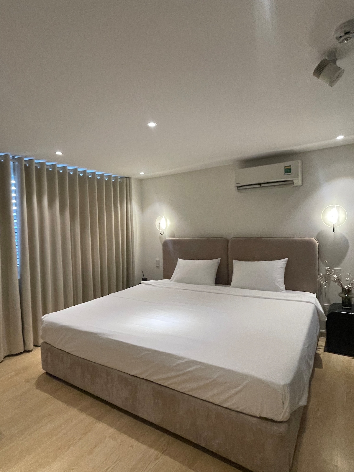 Um apartamento estúdio lindamente projetado com tudo o que você precisa, com localização central, mas escondido o suficiente para uma noite tranquila de sono, longe do barulho pesado da cidade. Ótimo para viajantes que querem explorar Saigon e estão procurando conforto de qualidade e uma experiência mais local. - Bela piscina. - Wi-Fi rápido, TV a cabo - Comodidades gratuitas para sua vida: máquina de lavar, secar, ar-condicionado, geladeira, água quente - Cozinha com ferramentas suficientes para cozinhar. Observação: não fornecer/não fornecer/apoiar as notas fiscais de IVA