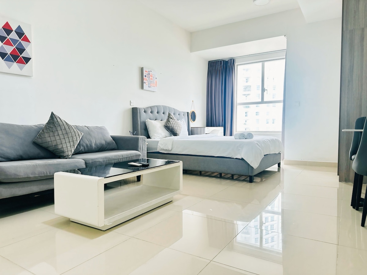 Estúdio moderno em Lavida Plus, bem no centro de Phu My Hung. Design aconchegante com cozinha completa, smart TV e varanda para vista da cidade e noites frias. Perfeito para casais que procuram uma estadia romântica ou viajantes que querem uma base elegante e confortável em D7. Caminhe até shoppings e pontos locais. Reserve agora para uma viagem tranquila a Saigon!