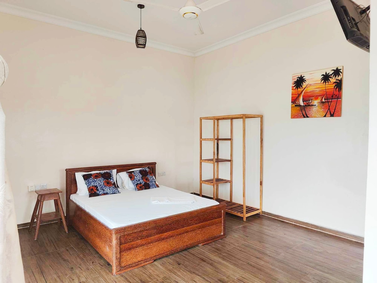 Casa de hóspedes com banheiro privativo, cozinha e área de estar externa. Grande jardim e piscina compartilhada (apenas comigo e minha família). Wi-Fi (20 Mb/s) disponível e incluído. O quarto está sendo limpo uma vez por semana para estadias mais longas. E há uma máquina de lavar roupa gratuita para usar, se necessário. Fica a 20-25 minutos a pé da praia de Nungwi ou Kendwa, ou a 5 minutos de carro ou tuktuk. Nós ajudamos você a organizar o transporte, se necessário 😊