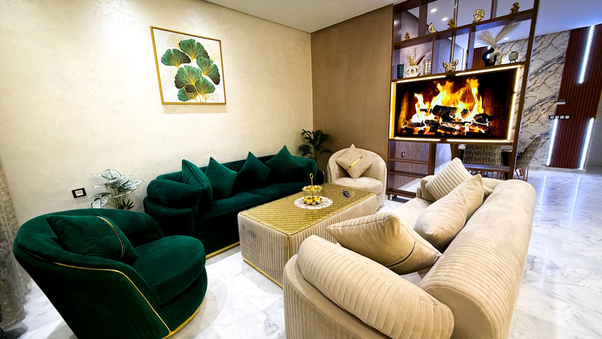 Bem-vindo ao nosso espaçoso apartamento no coração de Fez. Com 3 quartos, 5 varandas, vista panorâmica sem vizinhos, internet rápida, é um lugar ideal para explorar a cidade. A poucos minutos da antiga medina e a 2 minutos a pé da estação de trem de Fez Relaxe em uma espaçosa sala de estar, desfrute de uma cozinha bem equipada e de uma suíte master com banheiro privativo e ar-condicionado. O apartamento dispõe de elevador, 2 banheiros, 3 toaletes e um espaço generoso de 145 m²