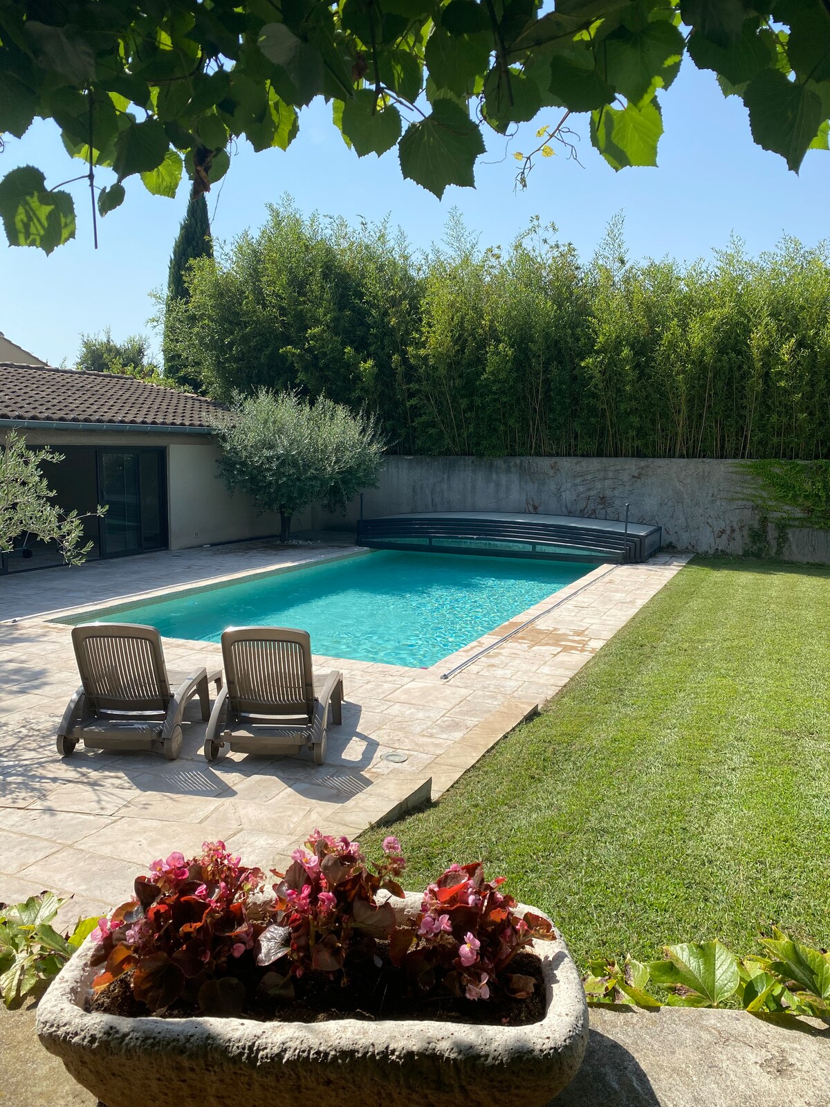 Bem-vindo ao nosso anexo de pedra renovado situado dentro do vinhedo da família. Com um extenso jardim, piscina aquecida (de abril a outubro) e cozinha de verão, você pode relaxar com todos os confortos modernos. Você tem uma sensação real de estar no campo, mas a menos de 15 minutos do centro de Avignon e do TGV. Também teremos o maior prazer em fazer uma visita guiada ao vinhedo e, claro, provar os vinhos. Vinho de cortesia estará esperando por você na chegada, informe sua preferência🤗) Podemos receber até 4 pessoas