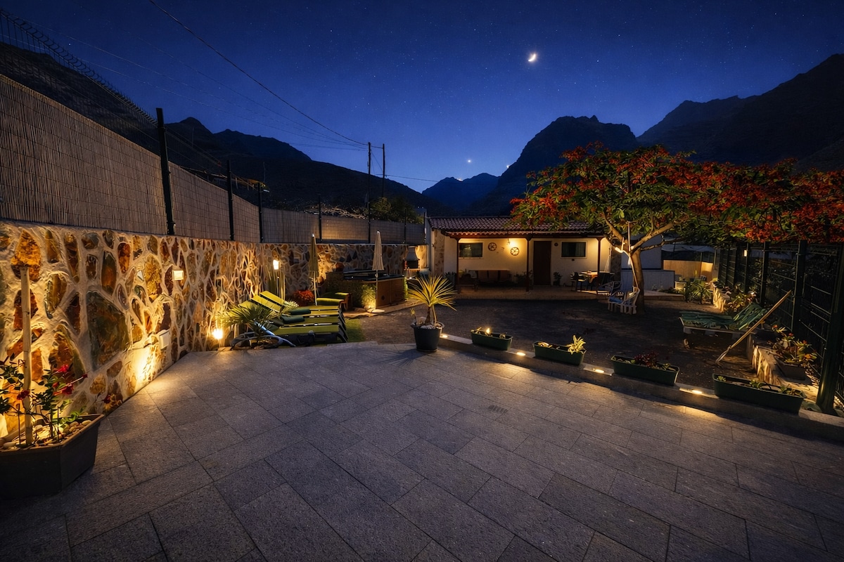 La Señorita está situada en un espacio privilegiado dentro de la Caldera de Tejeda, entre el Roque Nublo y el Roque Bentayga. Casa amplia, con tres dormitorios, dos baños y cocina- salón. La construcción data del sXIX y ha sido rehabilitada recientemente. Tiene capacidad para seis personas como máximo. La decoración y los ambientes están muy cuidados. Tiene varias terrazas y jardín. La piscina es compartida con nuestra otra casa, Casa Catina (máx 4 pax)