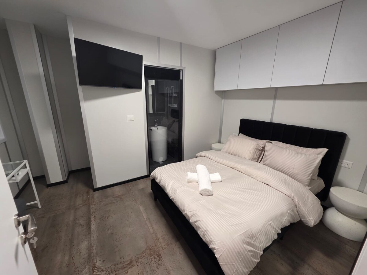 Welcome to Sweet Love - a stunning holiday apartment located on the boardwalk in Bat Yam, next to the beach. The apartment is on the 14th floor of an with parking based on availability. The apartment has a balcony with a stunning view of the sea, a living room and a bedroom. In the bedroom there is a luxurious double bed, in the living room there is a large sofa that opens into a bed, an equipped kitchenette and a bathroom.