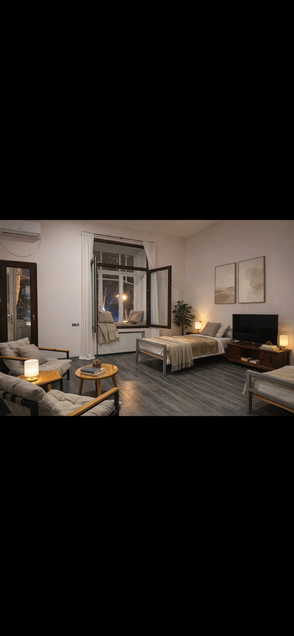 Reserve sua estadia em nosso charmoso loft de designer e experimente a vida de luxo à beira do rio! Este espaço imaculado e aconchegante em perfeitas condições está totalmente equipado com comodidades modernas para uma estadia confortável. Relaxe em um sofá, trabalhe na mesa com Wi-Fi de alta velocidade ou desfrute da varanda encantadora com vista para o rio Mtkvari e as luzes animadas de Mtatsminda. Localizado em uma rua tranquila perto da Praça Marjanishvili, desfrute de um retiro tranquilo enquanto está a poucos minutos das principais atrações da cidade.