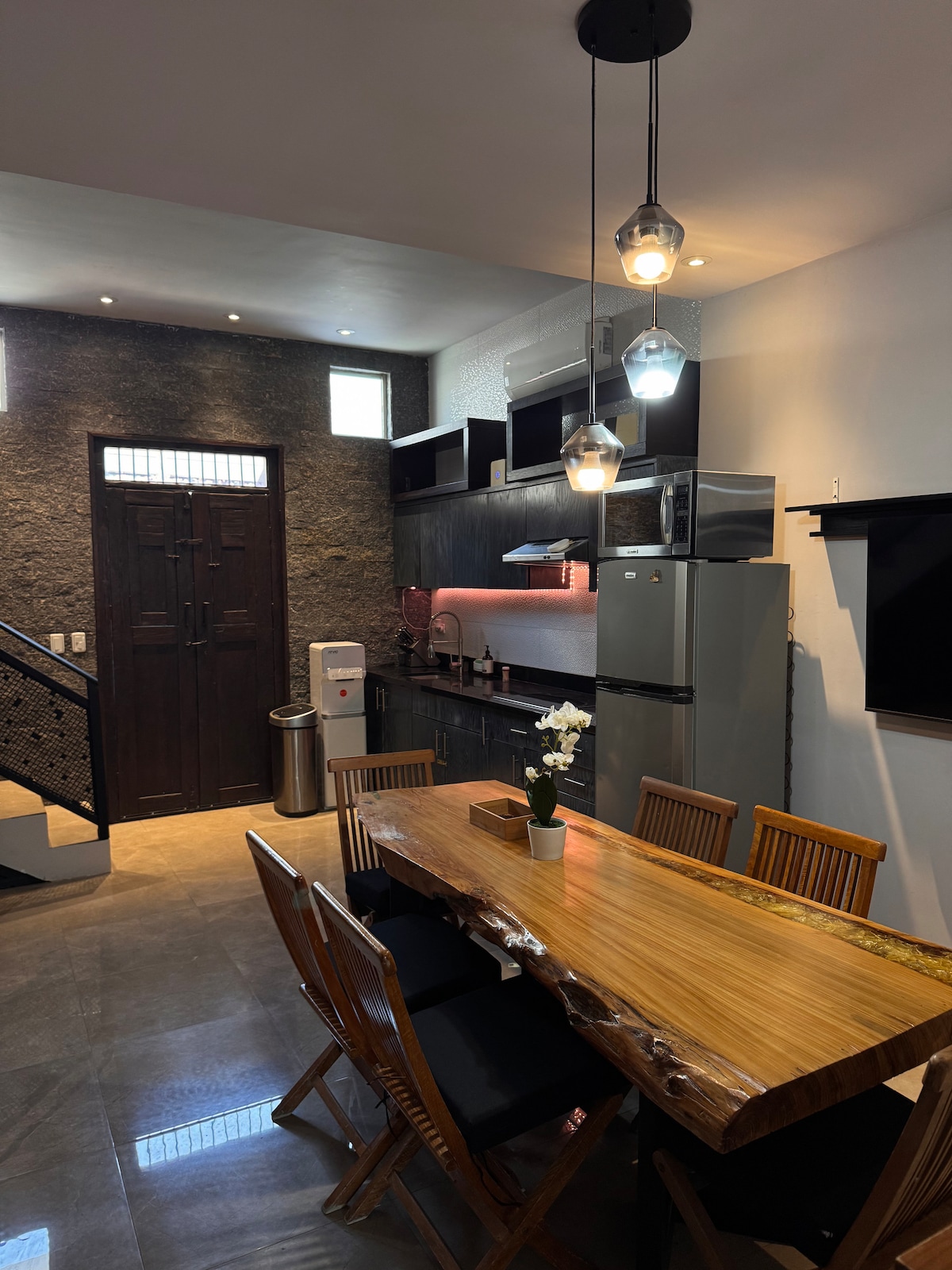 Apartamento completo com jardim no terraço, perto de Cintermex, Arena Monterrey, Parque Fundidora, Hospital de Médicos, Estádio BBVA, bancos, restaurantes e bares. Inclui tudo o que é necessário para cozinhar e higiene pessoal. Uma das melhores localizações da cidade — ideal para turistas, famílias e viajantes de negócios. Distancias: Aeroporto – 15 min Cintermex, Arena Monterrey e Parque Fundidora – 7 min Tec de Monterrey – 10 min San Pedro – 15 min *É necessária uma estadia mínima de 2 noites para usar a piscina.