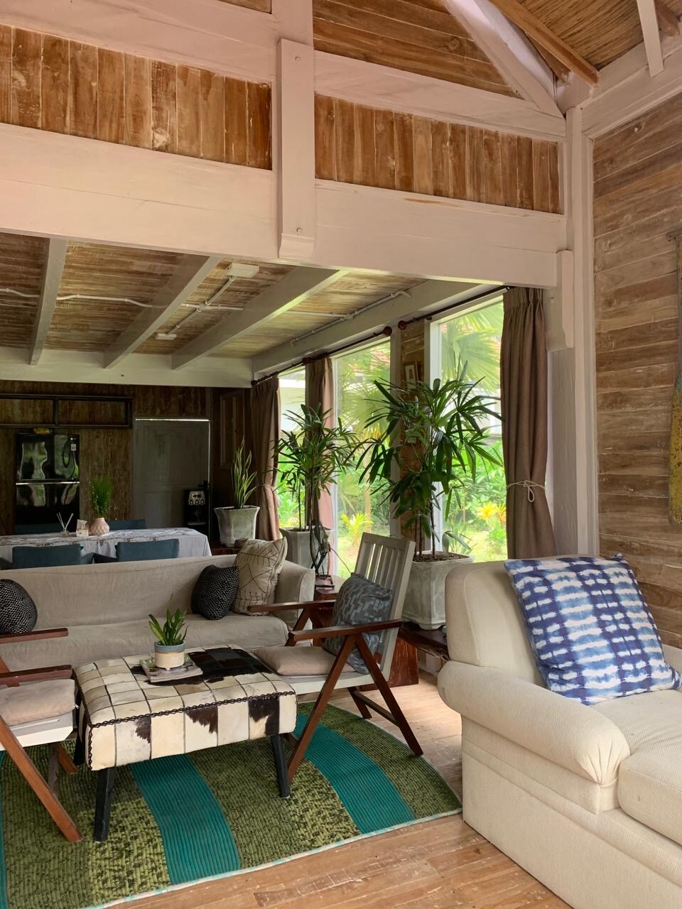 Absoluta casa à beira-mar. Casa de madeira de 2 andares com excelentes vistas para o mar. O piso térreo tem uma cozinha, casa de banho, área de estar e varanda com um jardim semi-privado com a sua própria entrada. O andar de cima é um quarto em plano aberto com armários grandes, TV de tela plana com canais via satélite e varanda com assentos. A casa tem água quente,ar condicionado, ventilador, geladeira de tamanho completo,chaleira, equipamentos de cozinha e Wi-Fi. Atrás da cabana há uma piscina 9x4 compartilhada e estacionamento para veículos.