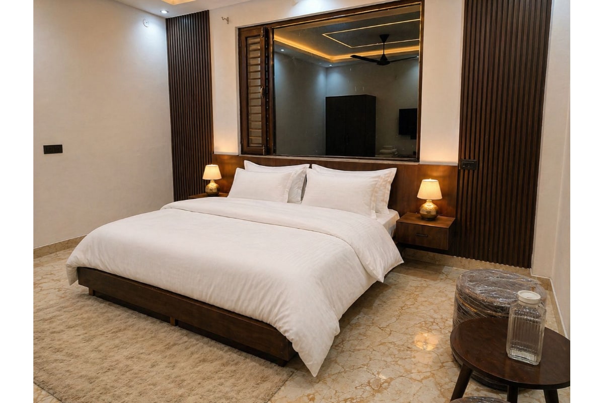 Experimente o luxo e o conforto no seu melhor em nosso Quarto Deluxe no Prashant Retreats. Entre em um oásis espaçoso que oferece um ambiente sereno e comodidades modernas, perfeitas para viajantes de negócios e lazer. O quarto possui uma decoração elegante, criando uma atmosfera calmante para uma estadia tranquila. Delicie-se com uma noite de sono tranquila na luxuosa cama king size e acorde com vistas deslumbrantes das paisagens ao redor.