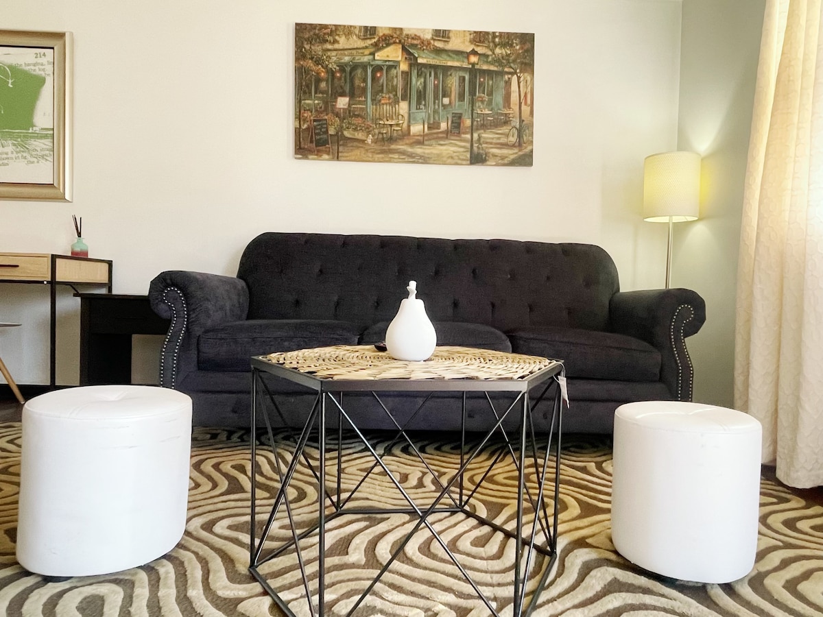 Este lugar elegante para ficar foi recentemente totalmente renovado, totalmente mobiliado com todas as necessidades, 2 quartos, 2 banheiros completos. O sofá pode ser convertido em uma cama adicional, permitindo 6 hóspedes. Espaço aberto e convidativo com tetos de 10 pés. Há TVs inteligentes em ambos os quartos, sala de estar e sala de jantar. A cozinha tem fogão de indução, máquina de lavar louça, micro-ondas, pratos, copos, talheres, panelas, frigideiras e muito mais. Café de cortesia, suprimentos de banho - pasta de dentes, escova de dentes, sabonete e xampu
