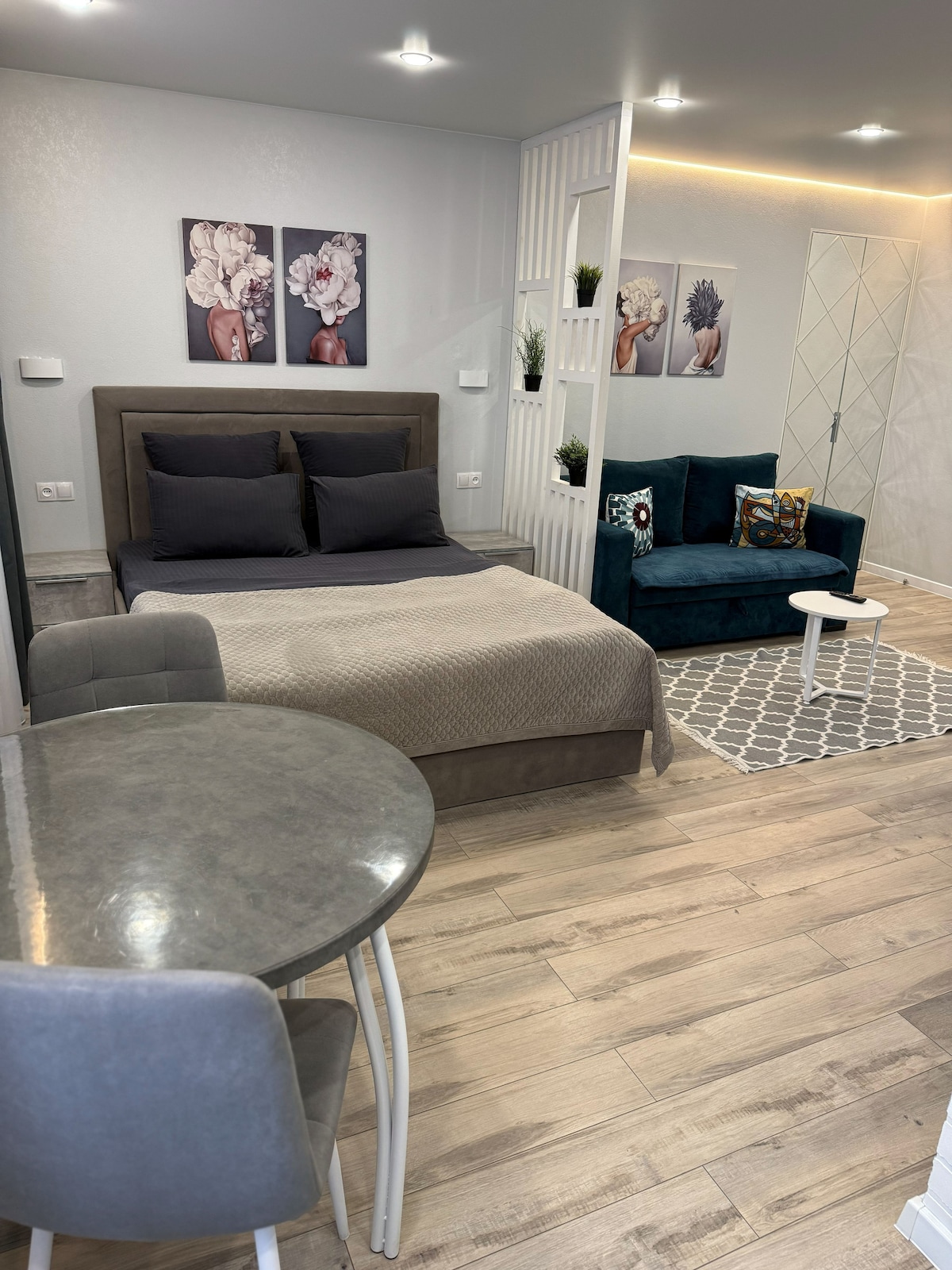 Apartamento moderno com renovação de designer e vista chique, localizado no centro da cidade com ar condicionado. O apartamento tem tudo para uma estadia confortável, incluindo itens de higiene pessoal. Projetado para até 2 pessoas. É alugado estritamente por 5 dias ou mais, para estadias de 1 mês ou mais, o custo é negociado separadamente.