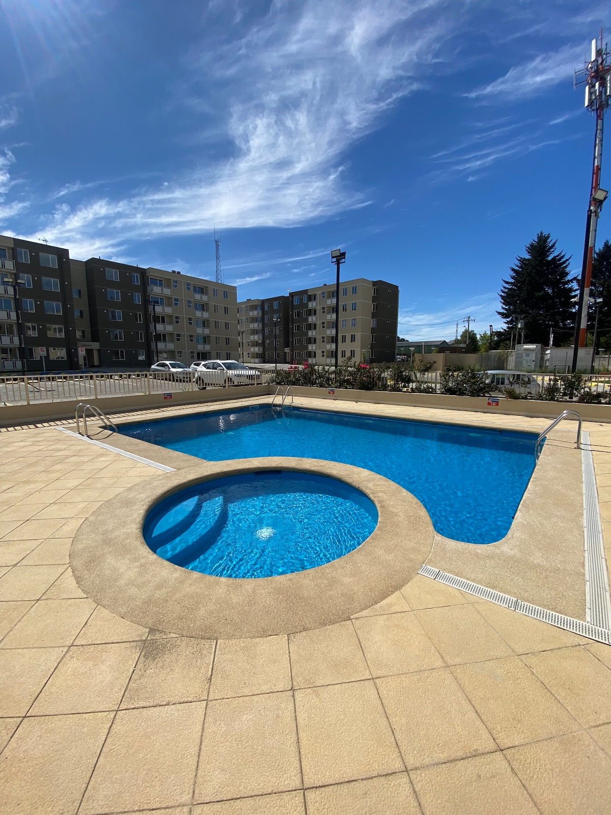 Desfrute de uma experiência elegante neste apartamento moderno e totalmente equipado, localizado no centro da cidade. Localizado na área privilegiada de Temuco, a apenas 1 quadra do Casino Dreams, do Mall Mirage e perto do Mall Portal Temuco, bancos, restaurantes, farmácias, pub, etc. Serviços: Wi-Fi, smart-tv 55, cozinha totalmente equipada e independente, terraço, secador de cabelo, lençóis e toalhas incluídos Áreas comuns: academia e bela vista. Outros aspectos a considerar: chegada com fechadura inteligente.