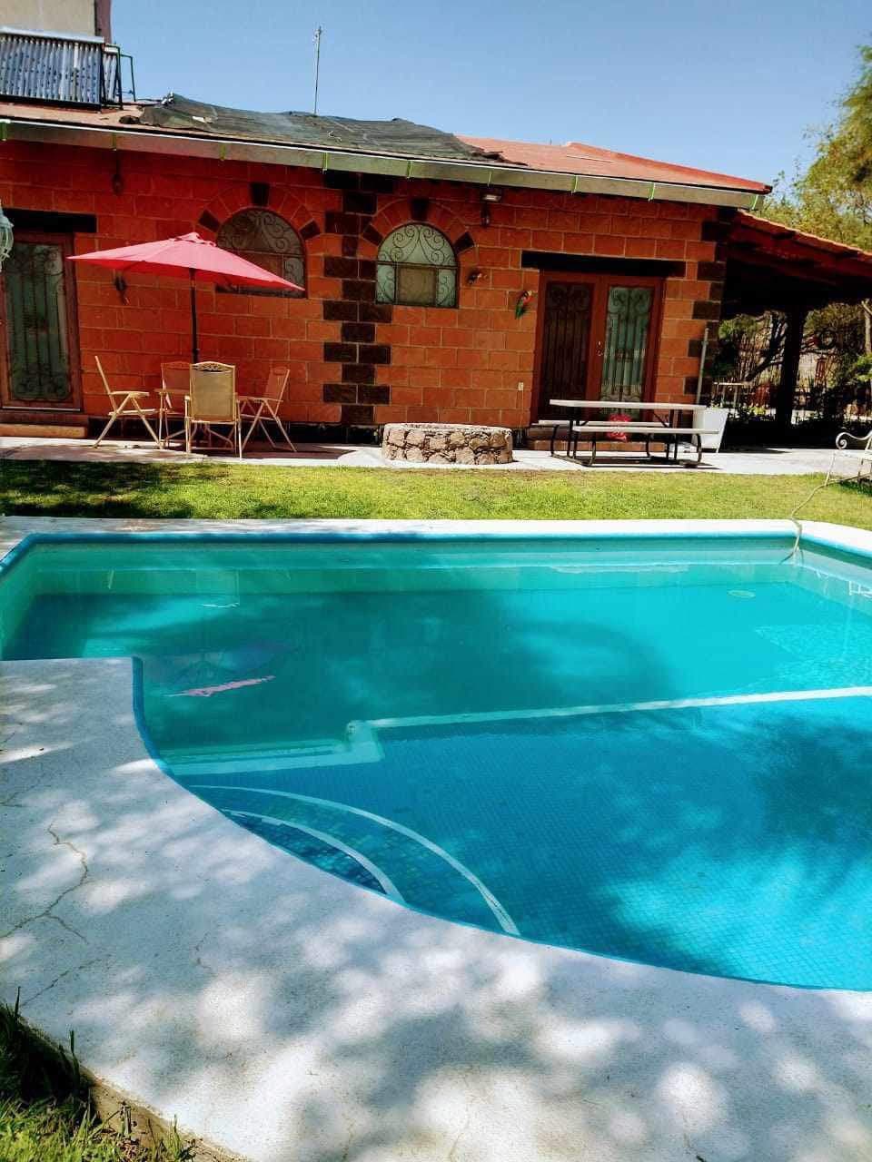 Este Airbnb cuenta con Jardín con sala exterior. Alberca con calentador. Baño exterior. Cocina equipada. Dos baños completos con vestidor uno en la sala y otro en la recámara. Sala amplia (con dos sofá camas matrimoniales) con capacidad para 4 personas. Dos pantallas planas con acceso a Netflix. Una recámara king size, con baño y vestidor. Wifi A 10 min del centro de Tequisquiapan caminando.
