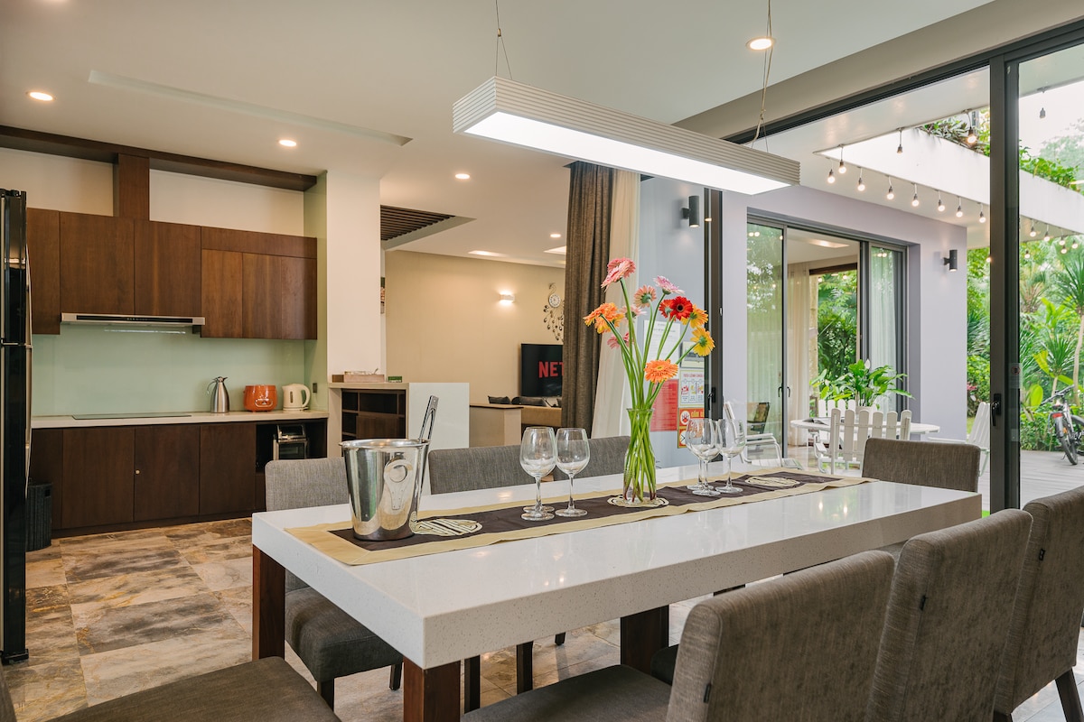 Vila de luxo no meio da natureza, recém-renovada com novos móveis para atender aos padrões de resort 5 estrelas. Espaço aberto, tranquilo e refinado – trazendo a você uma experiência completa de resort. Vila luxuosa cercada pela natureza, recém-reformada com interiores 5 estrelas novinhos em folha. Espaço tranquilo e elegante para uma estadia verdadeiramente relaxante
