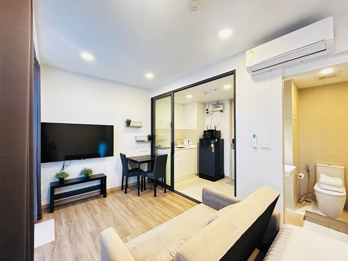 Ótima localização no coração da Boat Avenue em BangTao, este apartamento vem com todas as vantagens para uma estadia perfeita de curta/longa duração em Phuket para 1 pessoa/casal. Localizado no último andar do ZCape X2, você acordará com uma bela vista para a montanha perto de todos os locais-chave para começar o dia da maneira certa. O condomínio tem uma piscina e academia completamente gratuitas, juntamente com Wi-Fi de alta velocidade privado, smart TV, máquina de lavar roupa, etc. Bem em frente ao famoso mercado noturno de Bang Tao.
