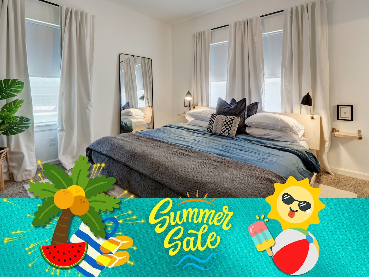 Uma maravilhosa suíte master com tema de praia atracou em OKC, localizada perto do Centro Médico OU, do Capitólio, do centro da cidade e muito mais. LGBTQ-friendly, esta é a casa de 2 profissionais do setor imobiliário. Totalmente remodelado. Design elegante. Banheira de luxo para você mergulhar seu corpo enquanto ouve músicas suaves. Venha ficar em nossa suíte para experimentar uma das melhores casas reformadas em OKC e enxaguar em nosso moderno chuveiro com tema de praia ou descansar em nossa cama de espuma de luxo.