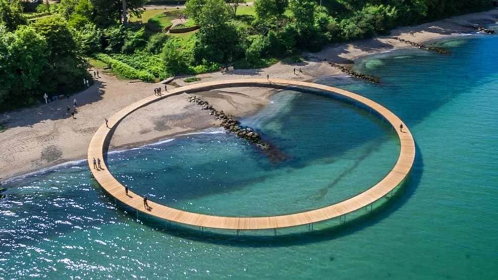 Casa com vista panorâmica de 180 graus para o mar. Arquitetura moderna com vista para o mar à frente do porto de Aarhus. Projetado pelo premiado e mundialmente famoso arquiteto Bjarke Ingels, apresentando a melhor vida do porto da cidade e vista para o mar. A casa de praia está localizada com acesso direto ao exterior e oferece belas vistas do oceano e do porto de Aarhus. A unidade apresenta um conceito moderno de plano aberto de dois andares, com portas e janelas de vidro do chão ao teto, permitindo vistas incríveis do oceano e do nascer do sol.