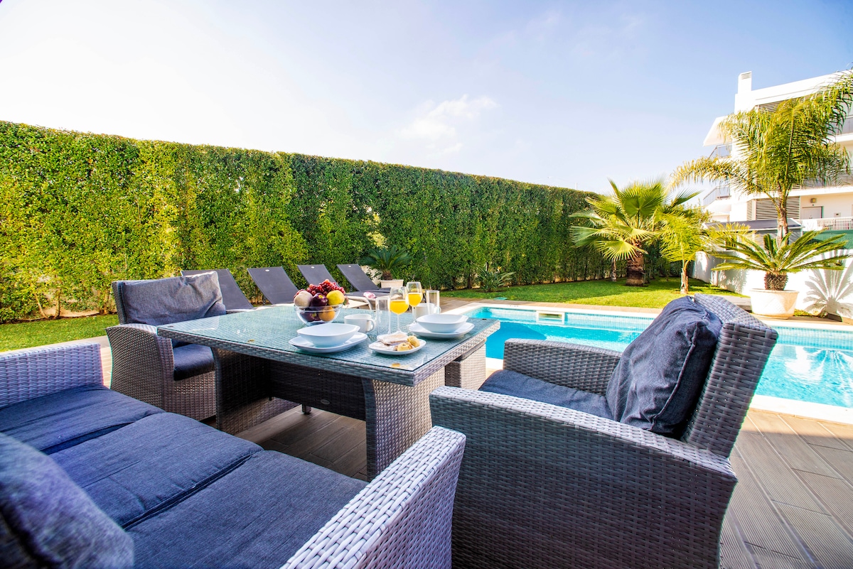 Airy 3br, AC, Jardim, 2min Strip, 8min Praia da Oura