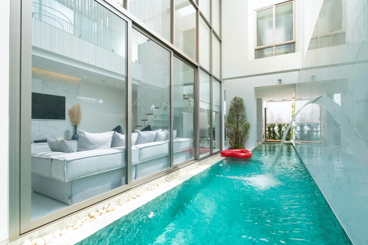 A luxuosa vila Y1 ocupa uma área de 800 metros quadrados e conta com uma piscina privada de grandes dimensões, 4 quartos e 5 banheiros. Acredito que você vai se apaixonar por ela assim que a vir. Ao entrar na vila, você ficará impressionado com o design luxuoso e a piscina de grandes dimensões. A decoração da vila é bastante requintada, com um design simples e moderno, cheio de arte moderna. Cada canto revela a busca do proprietário pela qualidade de vida, e todos os cantos são bonitos e elegantes. Cada quarto é projetado com atenção aos detalhes para proporcionar conforto e privacidade. A cozinha espaçosa está totalmente equipada para atender às suas necessidades de cozinhar e receber convidados. Do lado de fora da vila, a piscina super grande é tão bela e elegante que faz você se sentir como se estivesse em um país estrangeiro, deixando-o muito mais confortável. Ao entrar no pátio, você é recebido por uma atmosfera bela e elegante, com o aroma da terra e a exuberância da vegetação. Tudo é naturalmente elegante e de uma beleza sutil, o que agrega uma dimensão poética e artística à vila. O tempo parece parar aqui, e apenas o aroma das frutas e flores mantém este mundo refrescado, como se você estivesse em um paraíso. E quando a noite cai, as luzes da piscina e as luzes coloridas da casa tornam a paisagem noturna da vila especialmente encantadora. Com o som da música, você pode tomar um copo de vinho com os amigos. Que delícia! Aqui, você pode desfrutar de férias tranquilas e privadas, livre-se do barulho e das preocupações da cidade e aproveite ao máximo as maravilhas e bênçãos da natureza. Aqui, você pode trazer sua família para passar as férias; você pode trazer amigos para beber e se divertir; ou você pode, sozinho, relaxar e desfrutar da beleza da vida. Esta é a felicidade que a vila Y1 lhe traz.