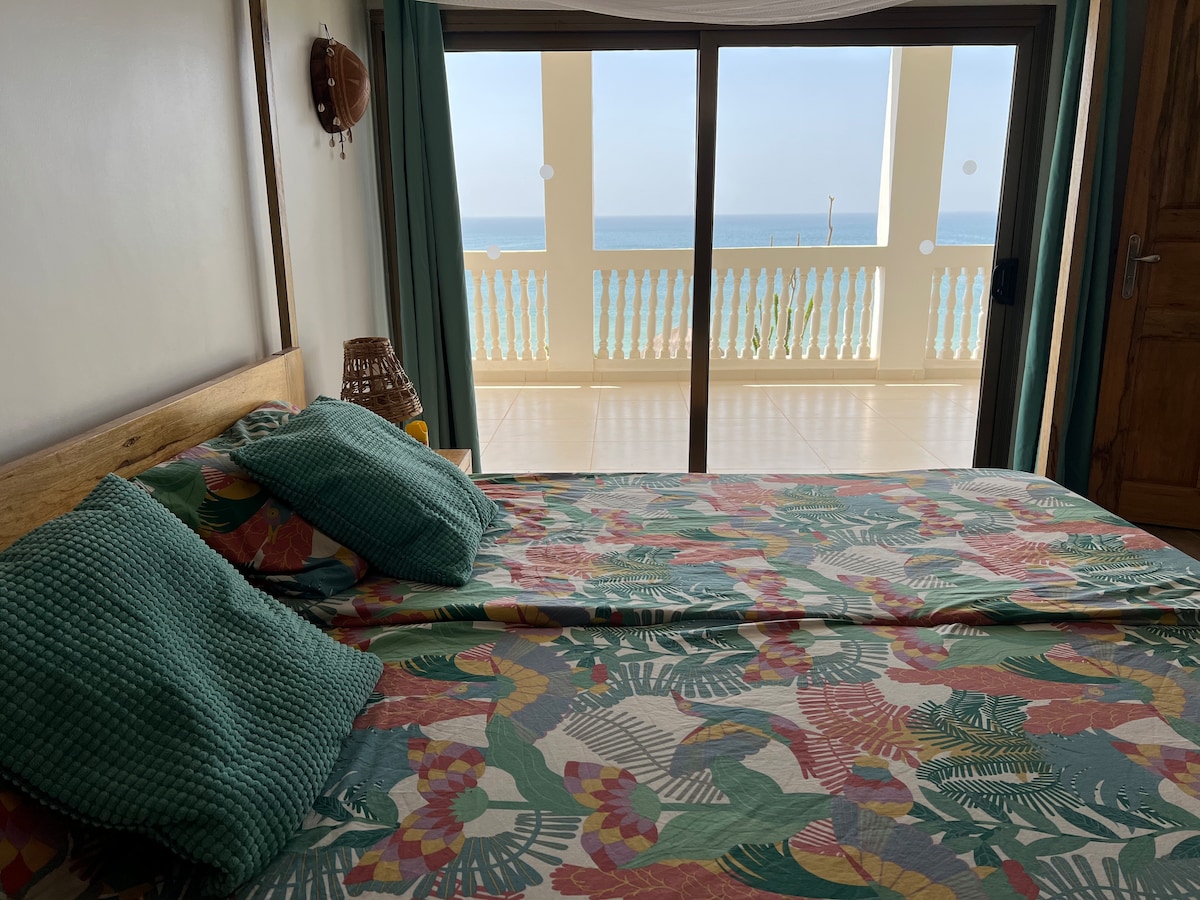 O apartamento individual de 72 m² é a parte superior da casa (possibilidade de alugá-lo inteiro, veja outros anúncios) Localizado em Popenguine, a poucos passos do centro e sua localização excepcional em frente ao oceano "pés na água" com uma vista mágica do oceano e das falésias. Seu grande terraço sombreado com vista para o mar é o centro desta casa, um lugar ideal para contemplar o pôr do sol sobre o oceano e deixar-se embalar pelo som das ondas.