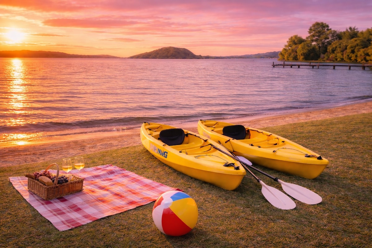 Refúgio à beira do lago | Rotorua | Caiaques | Churrasqueira | Deck