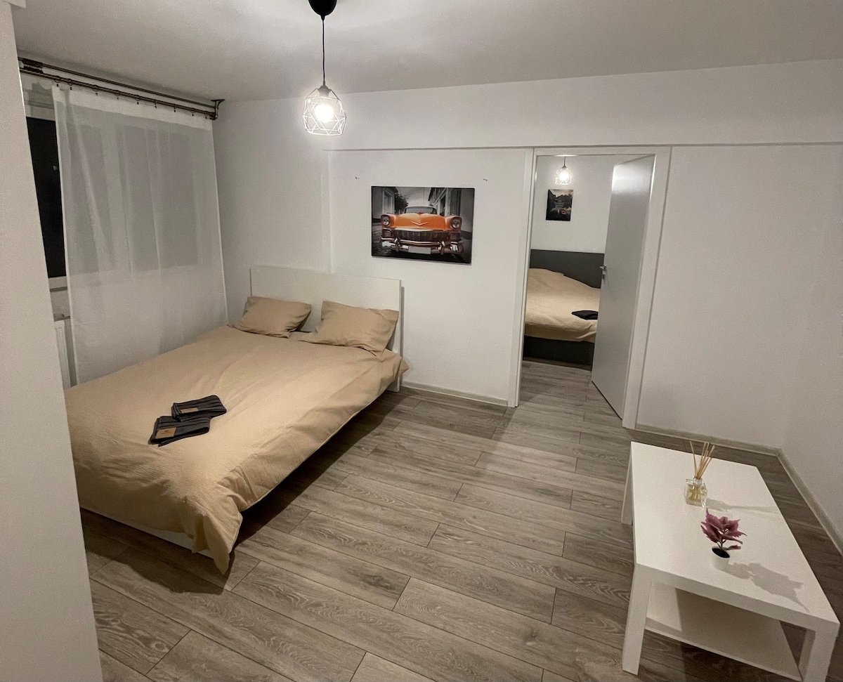 Ideal para explorar a cidade, incluindo o centro antigo. Os quartos são perfeitos para famílias ou grupos de amigos. O apartamento de dois quartos está localizado no centro, com acesso rápido à estação de metrô Tineretului (a estação fica ao lado da entrada do edifício). Perto do apartamento há muitas lojas e restaurantes, e o centro antigo está perto, você pode ir a pé ou de metrô (1 estação). Não são permitidas mais de 4 pessoas no apartamento.