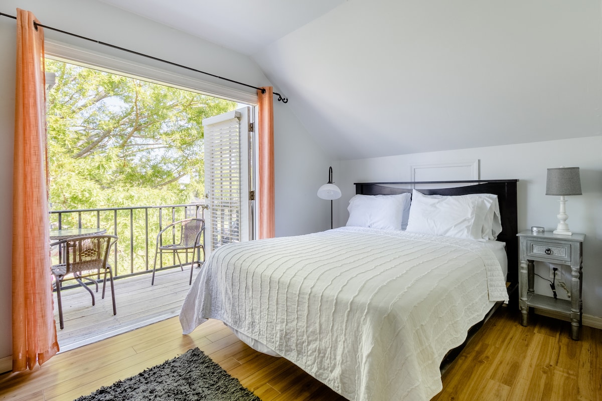 Relaxe neste confortável estúdio no 2º andar com entrada separada com vista para 2 acres com árvores e ar fresco. Muito limpo, não é permitido fumar dentro. Piscina no solo. Curta distância de carro para trilhas, pesca, praias, lojas e a 5 minutos do Centro Espacial Kennedy. A 40 minutos do Aeroporto Internacional de Orlando. Wi-Fi rápido, ar-condicionado, 1 cama queen size, banheira completa, armário, TV de 50 polegadas, aplicativos de streaming, frigobar, micro-ondas, chá, café, travesseiros, roupas de cama, toalhas, sabonete, xampu, coisas de praia, cortinas escuras. 25 anos ou mais.