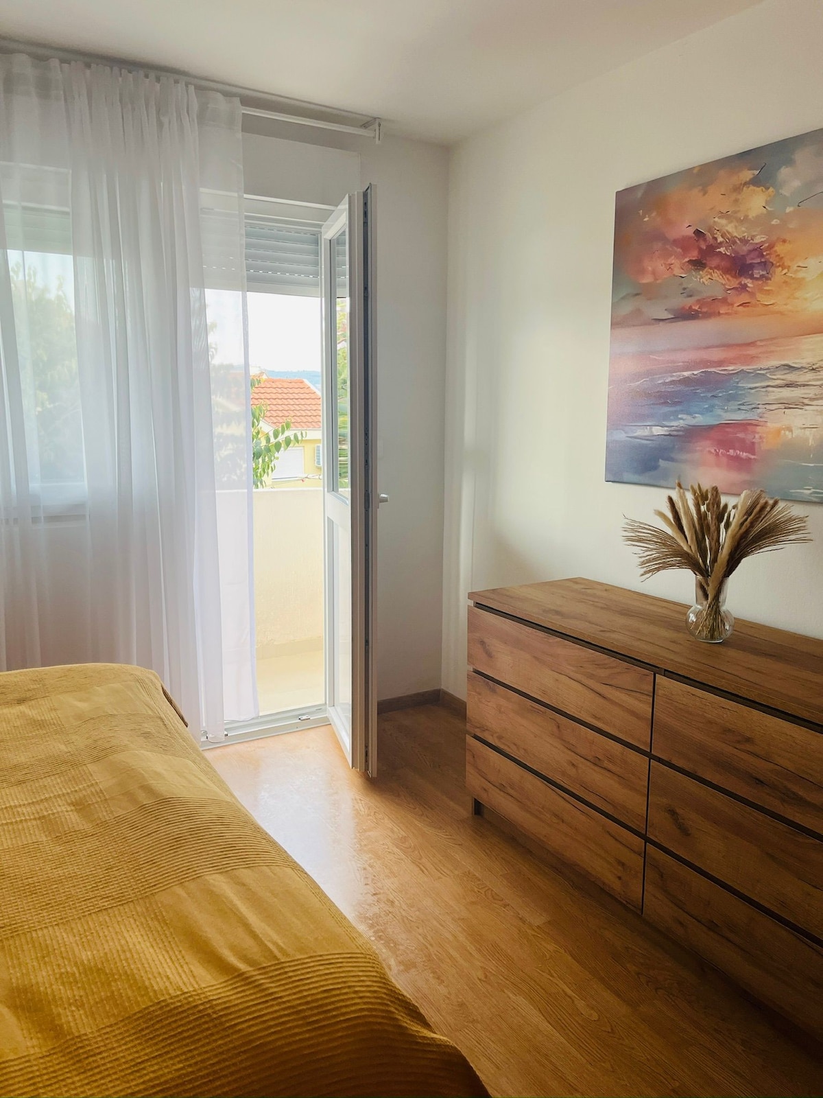 Very bright 1 bed/1 bath apt., sofa can be used only for a child of 4-10y old, southeast-facing big terrace, expansive views of Lovcen National Park & Tivat Bay. Peaceful downtown location. A/C, equipped small kitchen, 3min walk to sea & beach. 5min walk to Porto Montenegro. 2min walk to green market, promenades, stores, restaurants & cafes. WIFI and Cable TV free of charge. Please be aware that you can not book a day before other guests stay or one day after their stay as we need to clean up