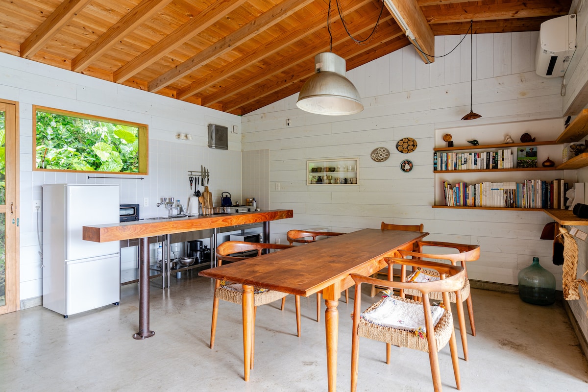Construí uma pequena casa com o objetivo de viver em simplicidade e em harmonia com a natureza de Okinawa. Como não há portas com tela para sentir a brisa, os pássaros voam para dentro da casa. Você pode desfrutar de um passeio a pé na praia onde as tartarugas marinhas vêm desovar, na ilha dos pescadores, no campo de satuki, na loja de macarrão de Okinawa, no restaurante e na loja de cerâmica. Como eu moro aqui normalmente, há uma sensação de vida, mas espero que você possa saborear lentamente a sensação de vida que flui ao lado de Okinawa, incluindo isso. Se você explorar o jardim e os vegetais do campo que estão descansando agora, também encontrará ervas de Okinawa, como nira, yomogi, choumeisou, butterfly pea e capim-limão. Sinta-se à vontade para usá-los. ∆ Mas cuidado com as cobras! Lagartixas, sapos, pássaros. Insetos. Todos vivem juntos e às vezes entram em casa. Por favor, não reserve se não se sentir confortável com isso. Se você já foi um de nossos☺️ hóspedes, oferecemos um desconto, por favor entre em contato conosco