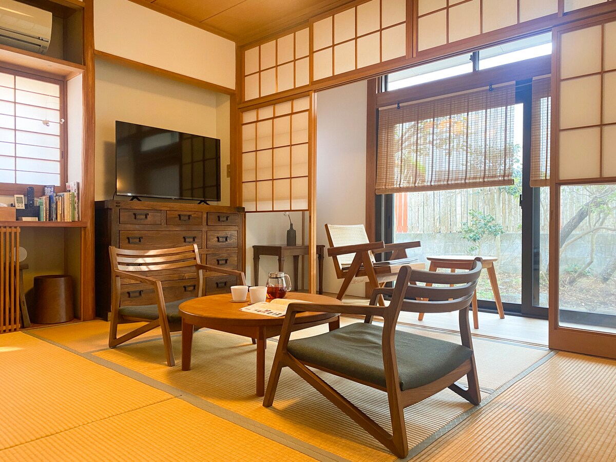 Uma casa geminada tradicional renovada em um bairro retrô. Lojas, padarias, boutiques e estúdios estão a uma curta distância a pé, onde você pode desfrutar da cultura local. Uma sauna privativa (roupa de banho necessária) está disponível mediante reserva. Wi-Fi gratuito e comodidades básicas são fornecidas. Observações: ・Cercado pela natureza, insetos podem aparecer. Spray fornecido. ・Estradas estreitas e inclinadas nas proximidades. Dirija com cuidado. ・Uma câmera verifica a identidade e o número de hóspedes. ・Café ao lado; a equipe pode passar a noite. Sem festas depois das 23h.