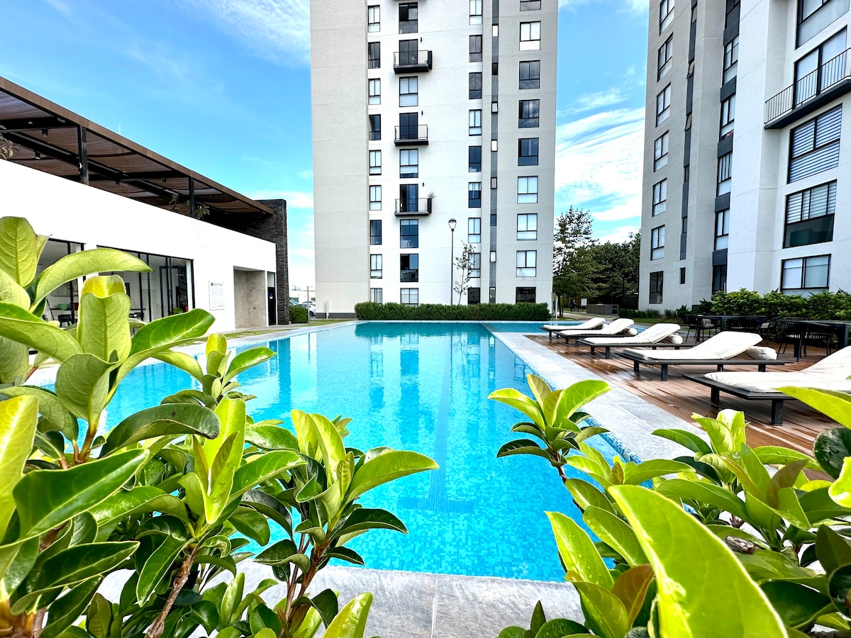 Apartamento luxuoso e bonito com design e móveis em art déco, relaxe e aproveite a vista porque fica no 9º andar, tem comodidades como piscina panorâmica, academia, telhado panorâmico, sala social, churrasqueiras, segurança e elevadores. O apartamento tem um quarto com uma cama queen size, um banheiro completo, lavanderia, cozinha completa, geladeira com máquina de gelo e dispensador de água fria. Nós fornecemos 2 toalhas para chuveiro e 2 toalhas para a piscina. Nós também oferecemos passeios para a cidade e cidades mágicas.